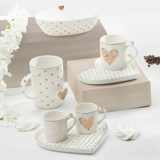 Lonček Amore Mio je del linje, ki je izdelana iz kakovostnega porcelana New Bone China. Pozlačeni srčki, dajejo lončku dodatno eleganco. Primeren je za pomivanje v pomivalnem stroju. Lahko je tudi lepo darilo. Dopolnite ga z ostalimi izdelki iz iste linije.