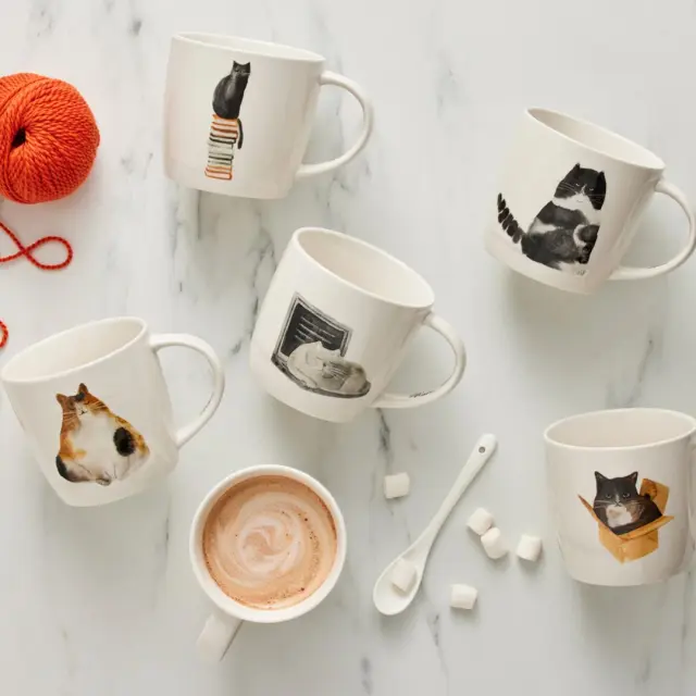 Lonček Cat in a Box je eden od 12 ekskluzivnih in simpatičnih dizajnov iz linije Feline Friends izdelan v sodelovanju z avstralskim umetnikom Marcom Martinom. Ponaša se z izvirno akvarelno ilustracijo, ki ponazarja kosmate prijateljice in njihove vsakdanje norčije. Njegova prostornina 400 ml omogoča, da v njem postrežete čaj, kavo ali kakav. Izdelan je iz trpežnega in kakovostnega porcelana z velikim ročajem za enostavno držanje in prenašanje. Material je odporen na praske in temperaturo, zato lahko lonček uporabite v mikrovalovni pečici in pomijete v pomivalnem stroju. Pakiran je v lični embalaži, zato je idealno darilo za vse lastnike in ljubitelje mačk.