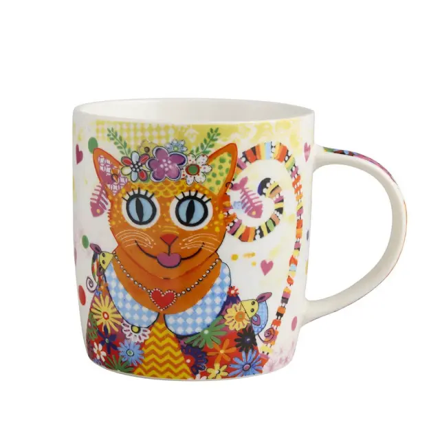 Lonček iz linije Kaleidoscope navdušuje z belo osnovo, poudarjeno z drznimi barvami in igrivim šarmom, ki popestrijo vsak trenutek ob najljubši pijači. Blagovna znamka Maxwell & Williams predstavlja edinstvene motive umetnice Donne Sharam iz Byron Baya v Avstraliji, ki prinašajo živahnost in pozitivno energijo v vaš dom. Lonček je izdelan iz kakovostnega, trpežnega porcelana ter primeren za uporabo v mikrovalovni pečici in pomivalnem stroju. Pakiran je v lični darilni embalaži v obliki hiške.