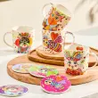 Lonček iz linije Kaleidoscope navdušuje z belo osnovo, poudarjeno z drznimi barvami in igrivim šarmom, ki popestrijo vsak trenutek ob najljubši pijači. Blagovna znamka Maxwell & Williams predstavlja edinstvene motive umetnice Donne Sharam iz Byron Baya v Avstraliji, ki prinašajo živahnost in pozitivno energijo v vaš dom. Lonček je izdelan iz kakovostnega, trpežnega porcelana ter primeren za uporabo v mikrovalovni pečici in pomivalnem stroju. Pakiran je v lični darilni embalaži v obliki hiške.