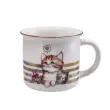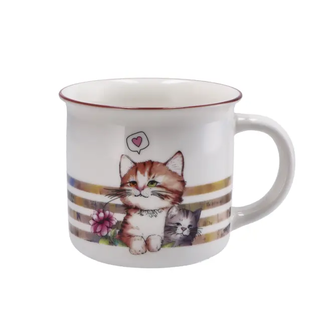 Lonček s prostornino 360 ml je izdelan iz kakovostnega porcelana New Bone China, ki zagotavlja izjemno trpežnost in eleganten videz. Krasi ga motiv simpatičnih muck, ki prinašajo nasmeh na obraz vsakega ljubitelja mačk. Pakiran je v lični kartonasti embalaži z ročajem, kar omogoča enostavno prenašanje in je lahko popolno darilo za vsakogar. Ta lonček ni le praktičen, ampak tudi očarljiv dodatek k vsakodnevnim ritualom pitja kave ali čaja. Na voljo je več vzorcev.