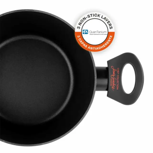 Notranjost ima tudi troslojni, s titanom ojačan nelepljiv premaz QuanTanium, ki preprečuje prijemanje hrane.