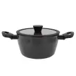 Lonec Chef Eco (20 cm) postavlja nove standarde vzdržljivosti in je prava izbira za tiste, ki cenijo trpežno in profesionalno posodo. Izdelan je iz kovanega jekla, žganega pri 820°C, ki je po celotnem robu zatesnjen s črnim emajlom. Lonec se hitro segreje, zato prihrani več kot 40% energije. Notranjost ima troslojni nelepljivi premaz QuanTanium, ojačan s titanovimi delci, dvojni ergonomski toplotnoizolacijski ročaj iz mehke plastike (Soft-Touch), pa poskrbi za udoben in varen oprijem brez drsenja. Lonec je primeren za uporabo na vseh kuhalnih površinah, tudi na indukciji. Kontaktna površina oz. podnožje lonca meri približno 15 cm. Ploski steklen pokrov s silikonskim robom in odprtino za paro omogoča stalen vpogled v vsebino posode. Lonec pomijte ročno. Višina lonca brez pokrova meri 11,5 cm.