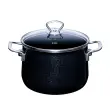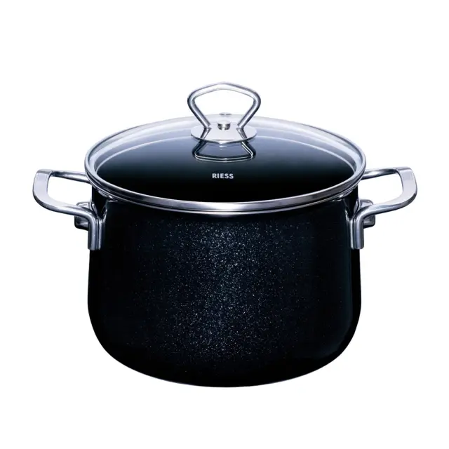 Lonec premera 20 cm, je del linije Nouvelle Black Magic, ki navdušuje s svojim modernim dizajnom in vznemirljivo mešanico materialov. Posoda s steklenim pokrovom ima priročno oblikovan ročaj iz nerjavečega jekla v modernem dizajnu in omogoča stalen vpogled v vsebino. Izdelana je iz emajla - materiala iz železa, ki je bil pri visokih temperaturah spojen s steklom. Emajliran lonec lahko uporabljate na vseh vrstah štedilnikov (plinskih, električnih, steklokeramičnih, indukcijskih in tudi na odprtem ognju). Zahvaljujoč dobri toplotni prevodnosti emajla so tudi stene posode vsepovsod tople, kar prihrani energijo. Robusten kromiran rob preprečuje krušenje. Neporozna, gladka steklena površina zagotavlja popolno higieno, je nevtralna glede arome in zavira razvoj bakterije ter je enostavna za čiščenje, saj jo lahko pomijete v pomivalnem stroju. Ob pravilni uporabi in negi bo emajlirana posoda dolgo zdržala in ohranila tipičen sijaj. Priporoča se tudi ljudem z alergijami na nikelj. NAMIG: Preverite še ostalo ponudbo posode iz linije Black Magic.