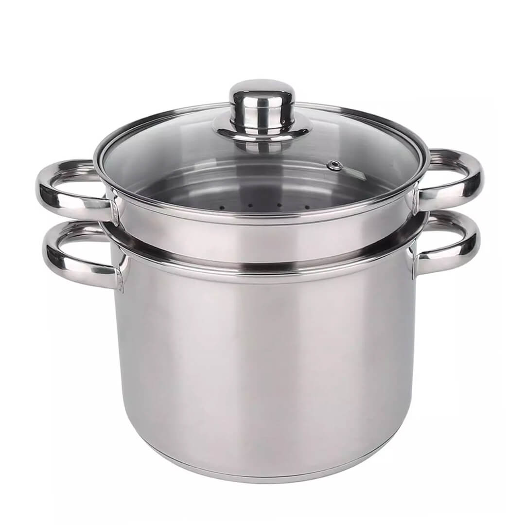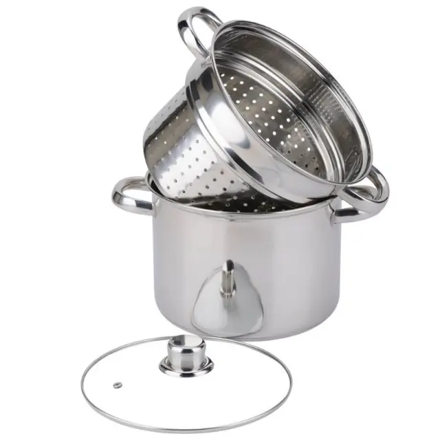 Lonec za kuhanje špagetov Baumalu je vsestranski pripomoček, ki omogoča enostavno in učinkovito kuhanje špagetov ter drugih vrst testenin. Zahvaljujoč vključenemu cedilu (košari) ga lahko uporabljate tudi kot kuhalnik na pari, zato je idealen za pripravo zelenjave, rib ali drugih obrokov. Izdelan je iz nerjavečega jekla, ki zagotavlja trpežnost, odpornost proti koroziji in dolgo življenjsko dobo. Trojna difuzijska osnova (nerjaveče jeklo/aluminij/nerjaveče jeklo) omogoča optimalno porazdelitev toplote za enakomerno kuhanje na vseh kuhalnih površinah, tudi na indukciji. Steklen pokrov s parno šobo in nerjavečim robom pa omogoča nadzor nad kuhanjem.