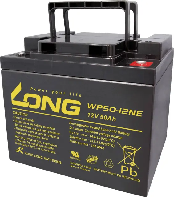 Long WP50-12NE WP50-12NE svinčeni akumulator 12 V 50 Ah svinčevo-koprenast (ŠxVxG) 199 x 171 x 166mm M6-vijačni priklop obstojnostni cikel, nizko samo