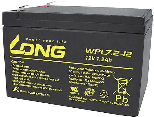 Long WPL7.2-12 WPL7.2-12 svinčeni akumulator 12 V 7.2 Ah svinčevo-koprenast (ŠxVxG) 151 x 102 x 65mm ploščati vtič, 6,35mm nizko samopraznjenje, brez