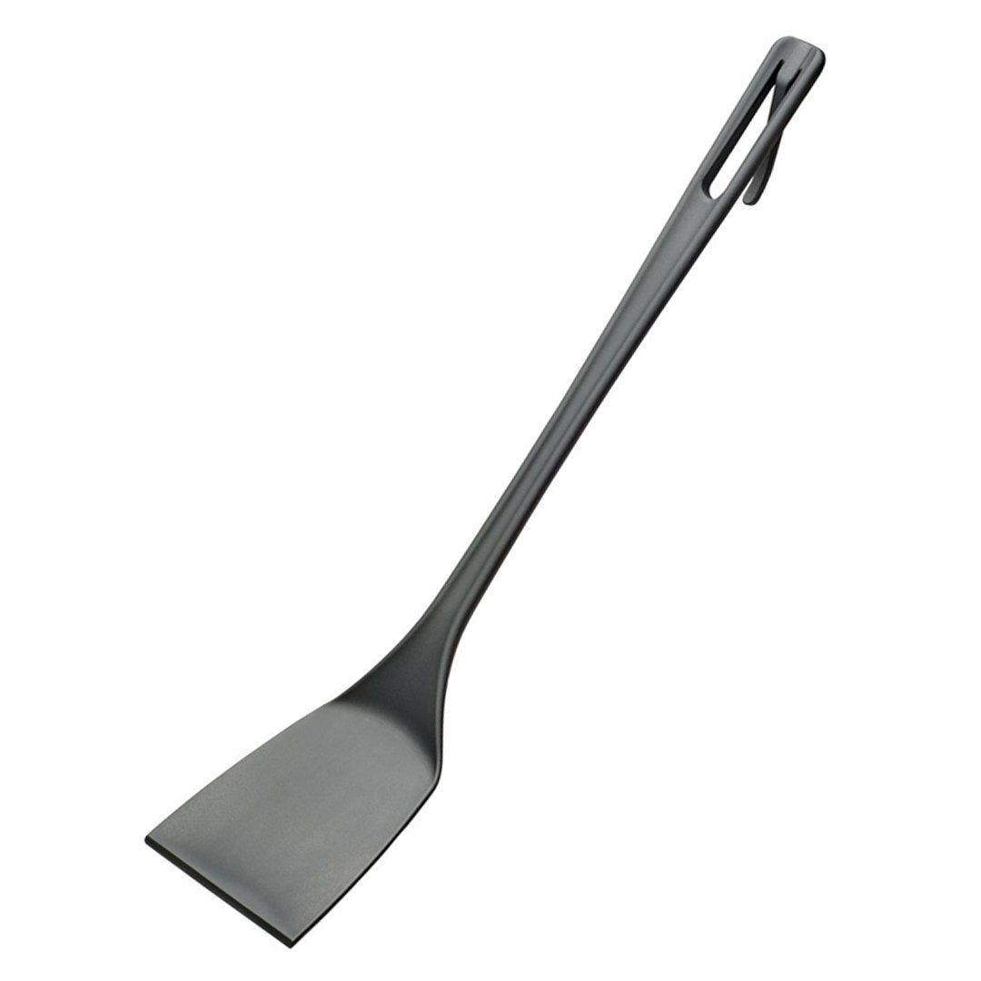 Perforirana pravokotna lopatka Highgrade Professional je idealna za uporabo v posodah, ki so občutljive na ureznine in praske (z non-stick prevleko, keramične posode), saj je izdelana iz visoko odpornega najlonskega materiala, ojačanega z vlakni, ki je odporen na vročino (+ 220°C) ne absorbira arom, okusov in barv hrane in je primeren za pomivanje v pomivalnem stroju. Dolga je 51 cm in jo lahko pospravite tako, da jo obesite na držalo. Tako jo boste imeli vedno pri roki.