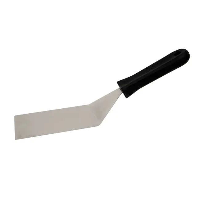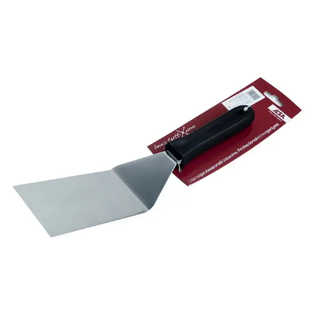 Pravokotna ukrivljena lopatka iz linije TuttiXuno je idealen kuhinjski pripomoček za zajemanje pečenih sladic, lazanje in podobne hrane iz posode ali pekača. V pomoč vam bo bila tudi pri peki zelenjave ali mesa. Izdelana je iz nerjavečega jekla dolžine 19 cm. Črn ergonomsko oblikovan bakelitni ročaj olajša njeno rokovanje in preprečuje drsenje.