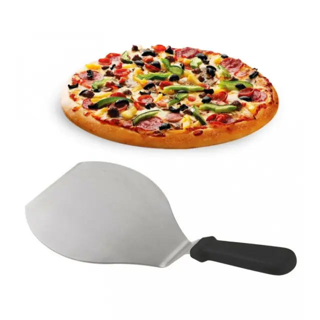 EVA LOPATKA ZA PIZZO s skupno dolžino 35 cm je izdelana iz nerjavečega jekla s črnim ročajem (dolžina ročaja 13 cm) iz polipropilena (PP), ki je plastičen material z dobro kemično odpornostjo, visoko mehansko in natezno trdnostjo. Primerna je za zajemanje manjših pic ali drugih jedi. Lahko jo pomijete v pomivalnem stroju.