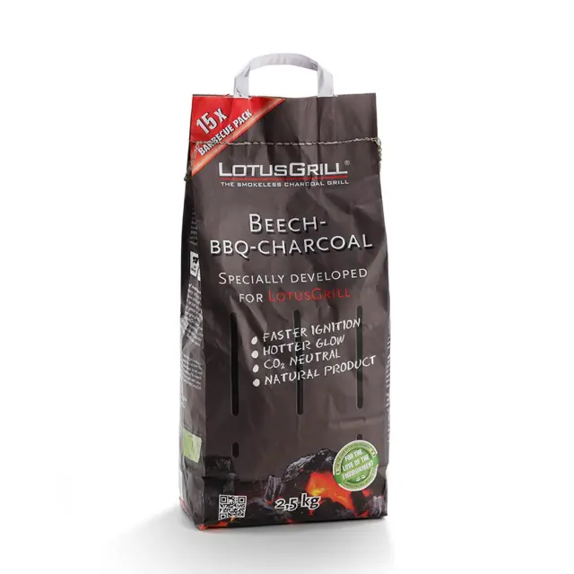 LOTUS GRILL OGLJE ZA ŽAR 2,5 kg je idealno za vse žare. Oglje iz bukovega lesa ima izjemno visoko vsebnost ogljika in kurilno vrednost. Zaradi tega ima še posebej kratek čas vžiga, in zadržuje toploto več časa kot običajno oglje. Je 100% naravni izdelek, izdelan brez uporabe zunanje energije v najsodobnejšem evropskem proizvodnem obratu.