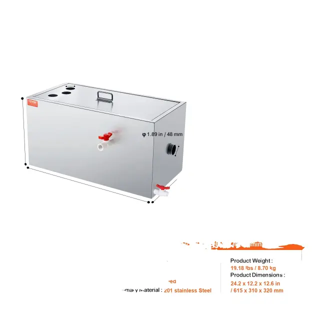 • Večnamenska uporaba: Primeren za kuhinje, restavracije, kavarne in komercialne prostore, ta lovilec maščobe učinkovito ločuje mineralna olja, živalska olja, rastlinska olja, mešana olja in emulgirana olja za učinkovito ločevanje olja in vode.
