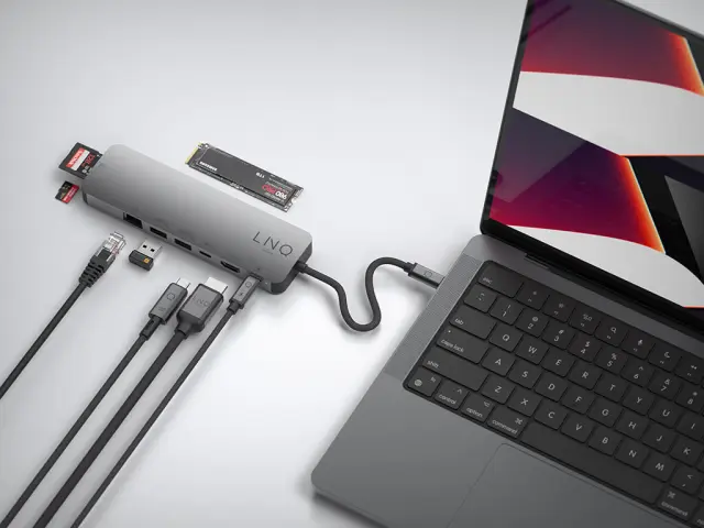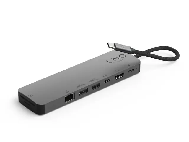 LINQ 9 v 1, USB-C, M.2 SSD, RJ45, SD+TF, HDMI, USB-C 3.2 Gen2, USB-C PD 100W, 2x USB-A Priključna postaja
