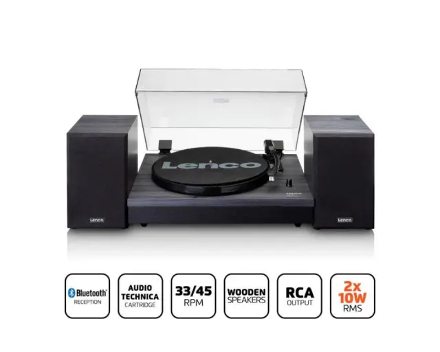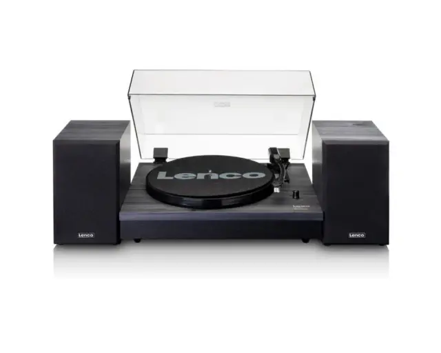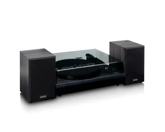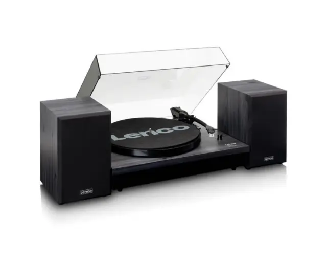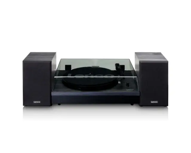 Lenco LS-301 je gramofonski sistem z 2 ločenima lesenima zvočnikoma. Uživajte v poslušanju svoje vinilke s kakovostnim gramofonom in enostavno nastavitvijo prek zvočnikov. Zvočnike lahko postavite tudi ločeno od predvajalnika, kar je idealno za pravi stereo učinek.
