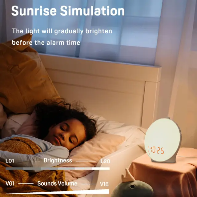 Lučka za prebujanje ob sončnem vzhodu - LED elektronska budilka - barvita ambientalna nočna svetilka - otroška lučka za prebujanje