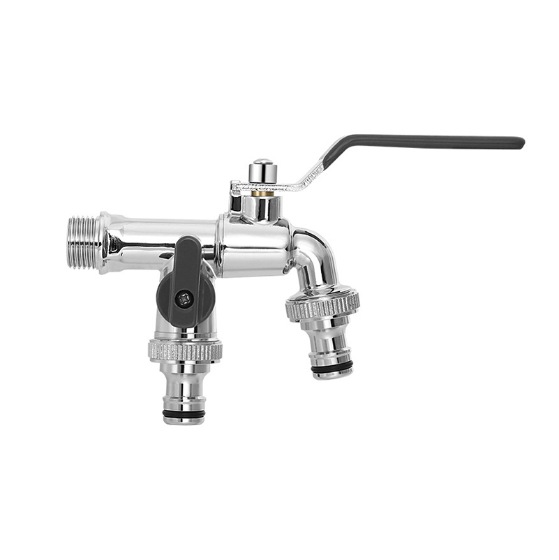 Vsestranska funkcionalnost: Pipa ima zasnovo z dvojno glavo in ponuja izjemno vsestranskost za vse vaše potrebe po zalivanju na prostem. Dve vtičnici omogočata priklop več naprav hkrati, kot sta vrtna cev in škropilnik, kar poenostavi vaša vrtna opravila.