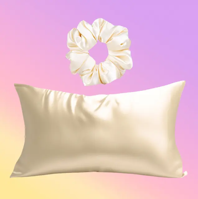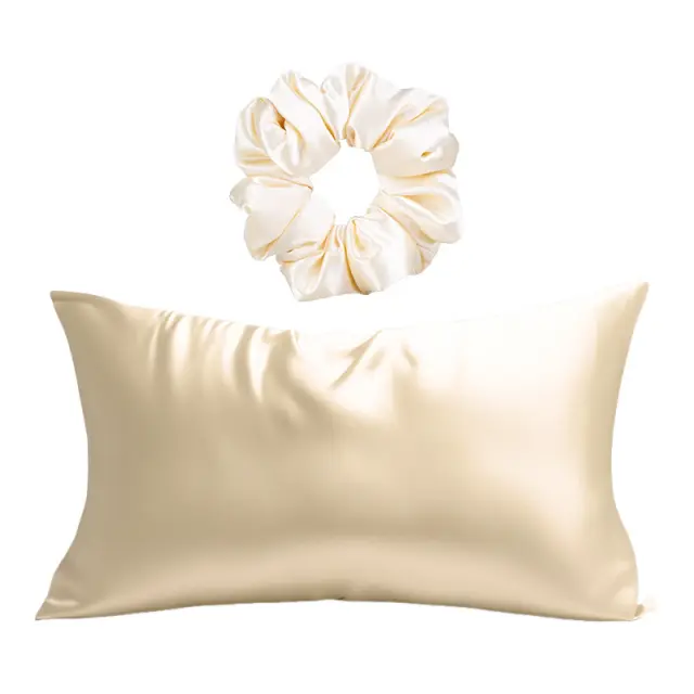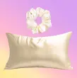Luksuzni 2-delni satenast darilni set: prevleka za vzglavnik in elastika za lase Yellow