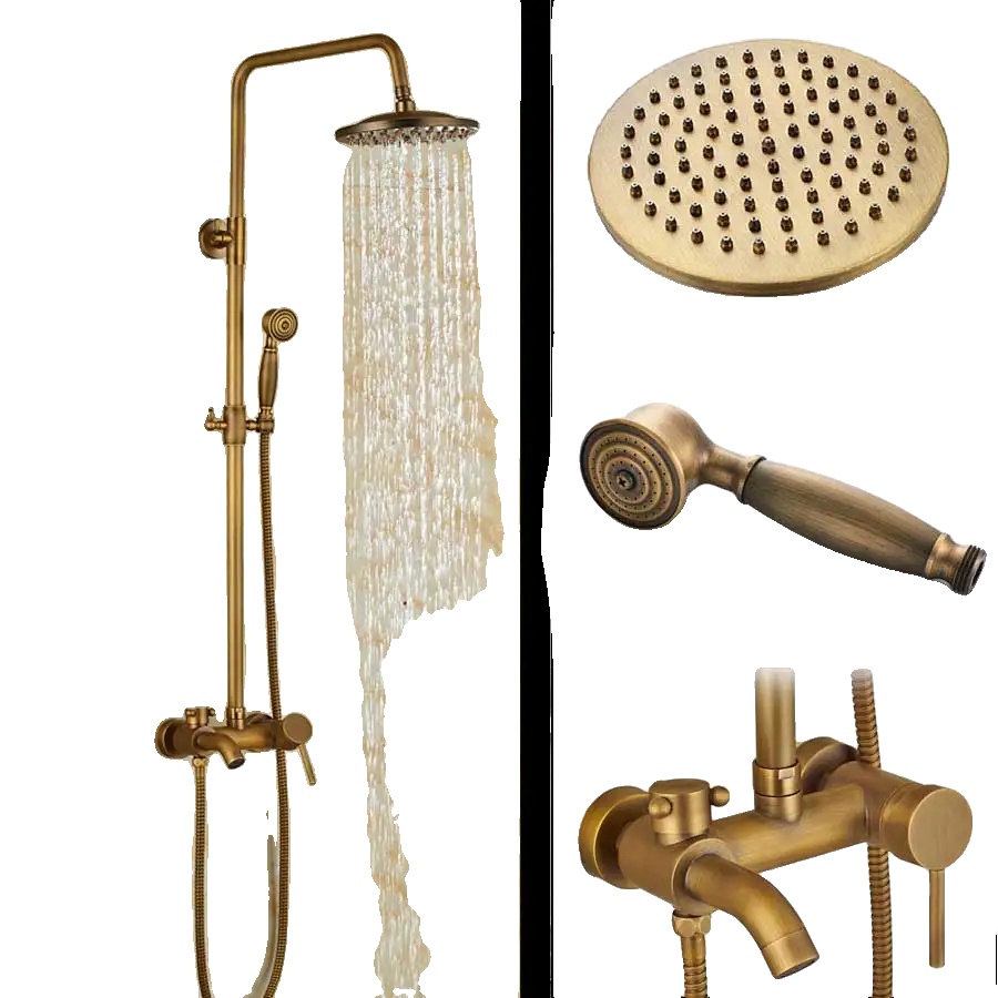 Luksuzni mešalni pipa za tuš, 200mm mesingasti tuš glava, nastavljiva višina 700mm-1200mm, starinsko mesing A01
