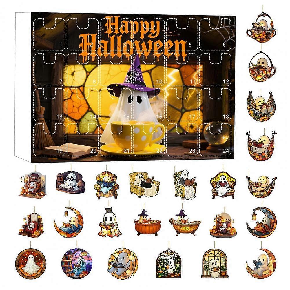 Luksuzni praznični odštevalnik 2025 Halloween Ghost ornament odštevalnik komplet 24 dni adventni koledar Spooky Suncatchers za dekoracijo doma-D