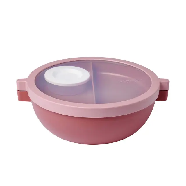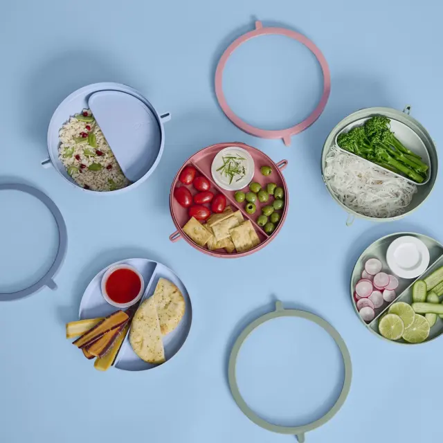 S seboj vzemite najokusnejše kosilo v elegantni posodi za kosilo Mepal Vita bento. Bento škatla v roza barvi je idealna za ohranjanje svežine vašega obroka, ki ga lahko pogrejete v mikrovalovni pečici. Pet različnih predelkov vam omogoča, da svoj obrok ločite in ga sestavite med kosilom. Majhna posodica je popolna za polnjenje s prelivom, omako ali namazom. Svojo najljubšo solato lahko vzamete s seboj v velikem predalu s pokrovom, dodatne prigrizke pa postavite na pladenj. Zaradi edinstvenega navojnega pokrova je posoda za kosilo bento neprepustna in jo lahko brez skrbi vzamete v torbo. Tako lahko uživate v najokusnejših kosilih na poti, v službi in predavalnici! Izdelana je iz polipropilena (brez BPA), ki je primeren za pomivalni stroj in mikrovalovno pečico ter ga je mogoče 100 % reciklirati.