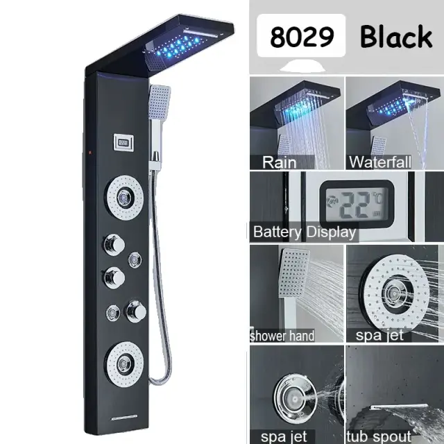 Luxusná sprchová stĺpová batéria, dvojité ovládanie, elegantný mosadzný povrch - Čierna 8029
