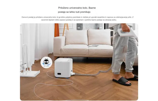 Poleg tega zmogljiva baterija omogoča do 150 minut delovanja, kar zadostuje za čiščenje večjih prostorov z enim polnjenjem.