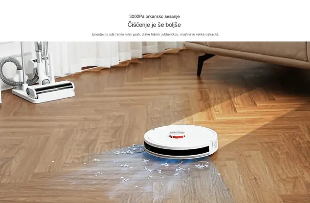Kombinacija robotskega sesalnika z mokrim čiščenjem s sesalno močjo 3.000 Pa z lahkoto odstrani prah, dlake hišnih ljubljenčkov, manjše in večje delce. Vaša tla bodo tako vedno videti brezhibno.
