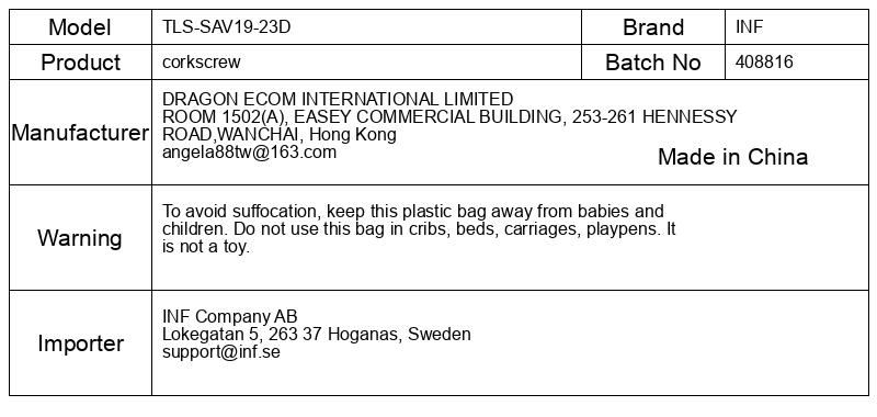 Da se izognete zadušitvi, hranite to plastično vrečko stran od dojenčkov in otrok. Te vrečke ne uporabljajte v zibelkah, posteljah, vozičkih, stajicah. To ni igrača.