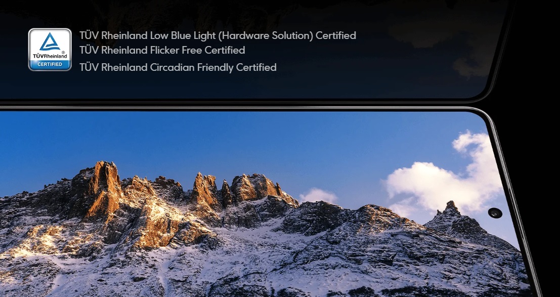 S trojnimi certifikati TÜV Rheinland lahko uživate v gledanju z nizko stopnjo modre svetlobe in brez utripanja brez občutka utrujenosti vida. Certificiran zaslon pomaga zmanjšati obremenitev oči, saj prilagodi temperaturo barv glede na uporabljeno aplikacijo ter čas sončnega vzhoda in zahoda. Zaslon celo pomaga zmanjšati vpliv svetlobe na izločanje melatonina in izboljšati kakovost spanja.