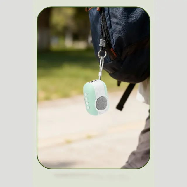 Compact & Portable Design: Zasnovan za vrhunsko prenosljivost, je ta mini Bluetooth zvočnik lahek in kompakten, zato ga je enostavno prenašati v žepu, torbi ali nahrbtniku. Njegova ljubka oblika makrona doda pridih sloga vaši zvočni izkušnji. Vgrajena vrvica vam omogoča, da ga pritrdite na torbo ali zapestje za dodatno udobje. Ne glede na to, ali se odpravljate na pohod, kampiranje ali preprosto potujete v službo, je ta zvočnik popoln zvočni spremljevalec. Združljiv je z večino naprav in ga je enostavno seznaniti.
