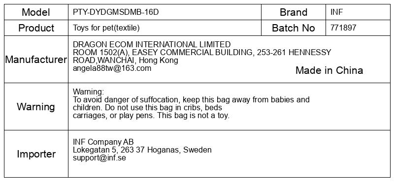 Opozorilo: Da bi se izognili nevarnosti zadušitve, vrečko hranite izven dosega dojenčkov in otrok. Vrečke ne uporabljajte v otroških posteljicah, vozičkih ali igralih. Ta vreča ni igrača.
