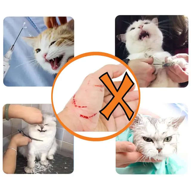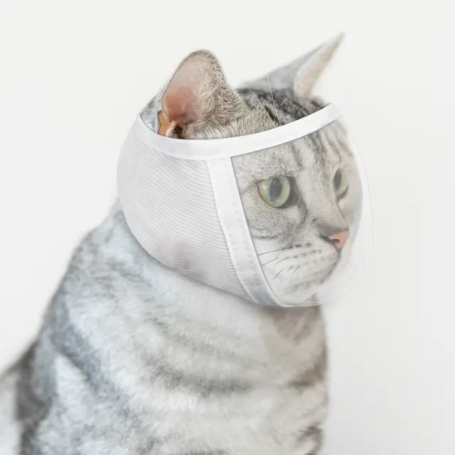 Mačji nagobčnik preprečuje, da bi mačka ugriznila vas ali negovalno osebje med zdravljenjem pri veterinarju in med nego dlake. Prevleka je mehka in prozorna ter mački omogoča normalno dihanje.