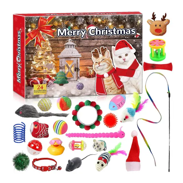 Mačji adventni koledar 24 dni zabavnih igrač in priboljškov za mačke, interaktivne igrače iz mačje mete, popolno darilo za ljubitelje mačk