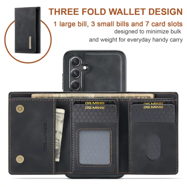 Zasnova 2 v 1: Ovitek ima edinstveno zasnovo 2 v 1, ki združuje zaščitni ovitek za mobilni telefon s funkcionalno denarnico. To vam omogoča, da najpomembnejše kartice in gotovino preprosto nosite skupaj z mobilnim telefonom, s čimer odpravite potrebo po ločeni denarnici.
