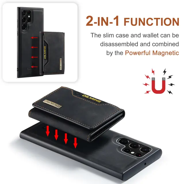 Zasnova 2 v 1: Ta ovitek ima edinstveno zasnovo 2 v 1, ki združuje zaščitni ovitek za telefon s funkcionalno denarnico. To vam omogoča, da najpomembnejše kartice in gotovino preprosto nosite skupaj z mobilnim telefonom, s čimer odpravite potrebo po ločeni denarnici.