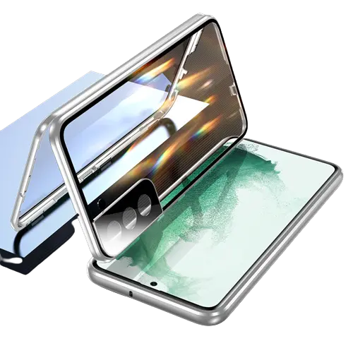 Popolna zaščita: kombinacija materiala iz kovine in kaljenega stekla zagotavlja robusten ščit pred padci, udarci in praskami. Naj bo vaša naprava lepa in nova s to vrhunsko zaščitno rešitvijo.