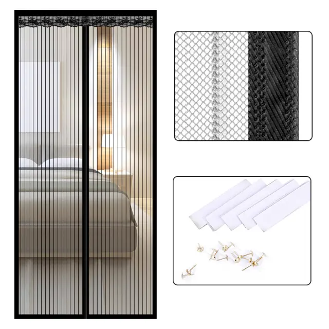 Magnetna mreža za vrata proti komarjem, črtast poliester, 95 cm x 200 cm