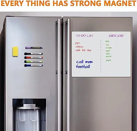 Magnetna pisalna tabla, ki se pritrdi na magnetne površine, kot so hladilniki ali omare. Idealno za pisanje seznamov opravil ali nakupovalnih seznamov. Enostavno čiščenje brez madežev. Ne pozabite uporabljati pisal za belo tablo.