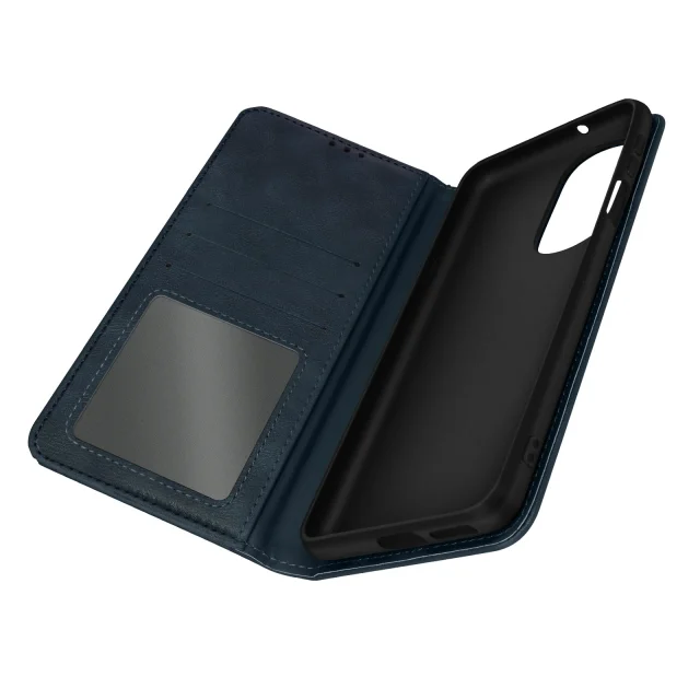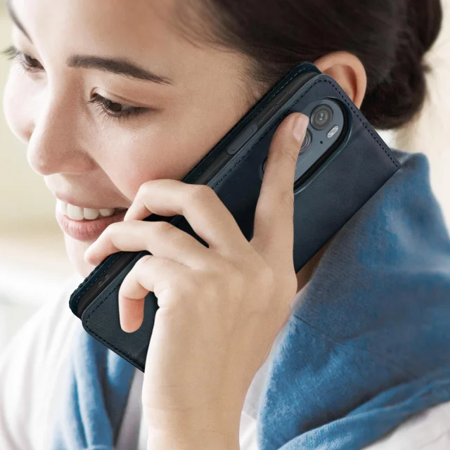 Magnetna preklopna torbica Motorola Edge 30 Pro, držalo za kartico in videoposnetek - polnocno modra