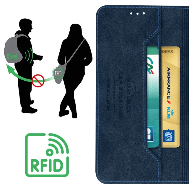 Magnetna preklopna torbica s tehnologijo blokiranja RFID, podporo za video - modra za Samsung Galaxy A34