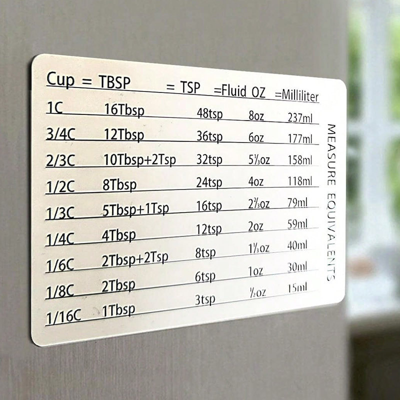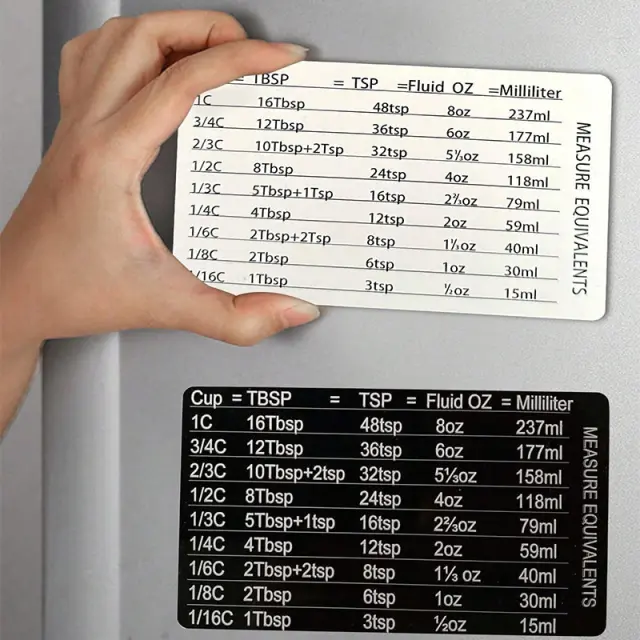 Močan magnetni hrbet: Ta magnetna tabela pretvorbe se varno pritrdi na katero koli magnetno površino, kot so hladilnik, pečica ali žar. Ne bo zdrsnila ali padla, tudi če se vam mudi.