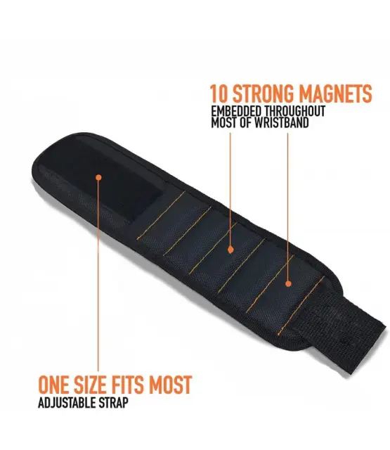 Večnamensko – To magnetno držalo je popolno za izboljšave doma, gradbeništvo, tesarstvo, popravilo avtomobilov in druge projekte. Tesno se ovije okoli zapestja. Material ne draži kože zapestja, je mehak na dotik in zelo odporen na trenje. Široko območje prilagajanja omogoča, da se prilega skoraj vsaki roki!