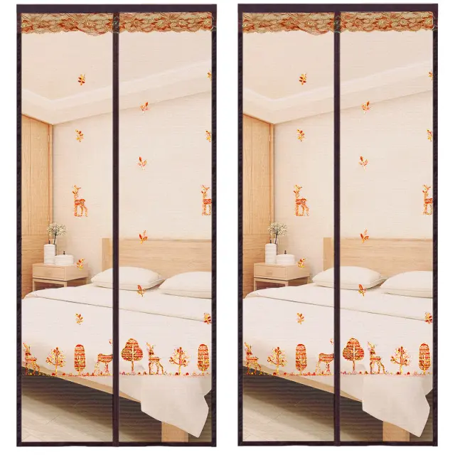 Magnetna zaščitna zavesa za vrata z vezenim gozdnim jelenom, zaščita pred insekti, zavesa za vrata 85 x 210 cm