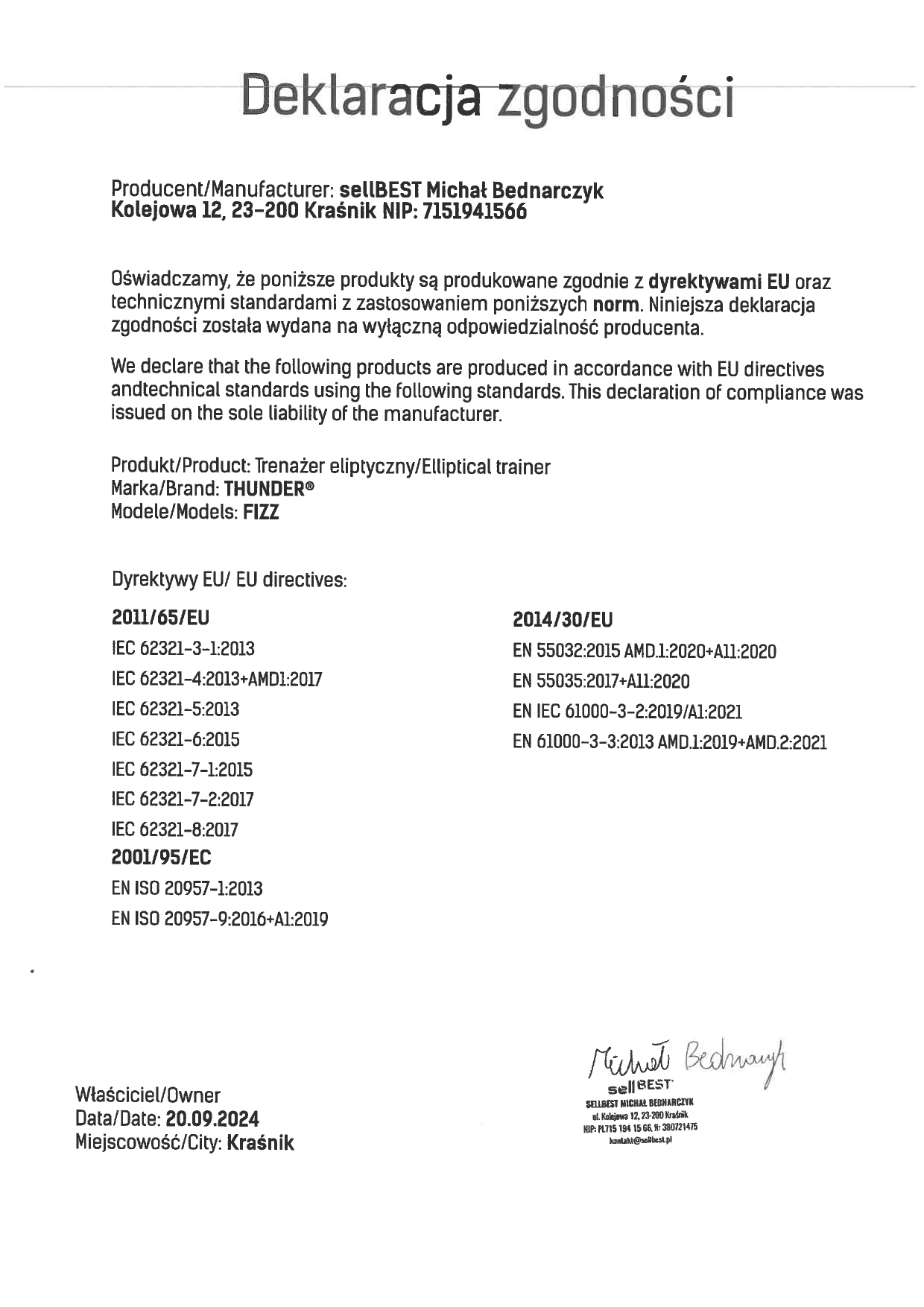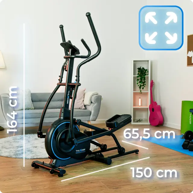 Magnetni eliptični trenažer THUNDER® FIZZ – 10 stopenj upora, 10 kg vztrajnik, Bluetooth, 33 cm korak, držalo za bidon, nosilnost 110 kg