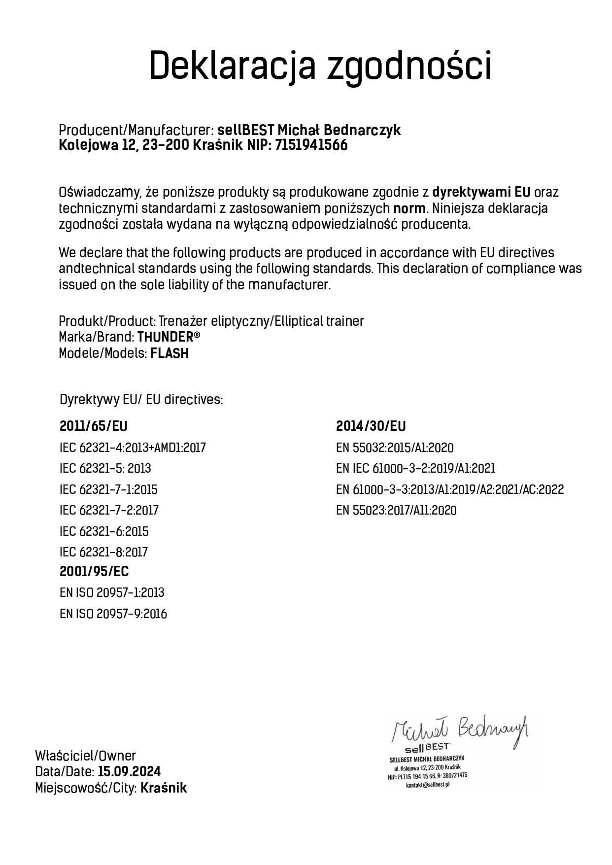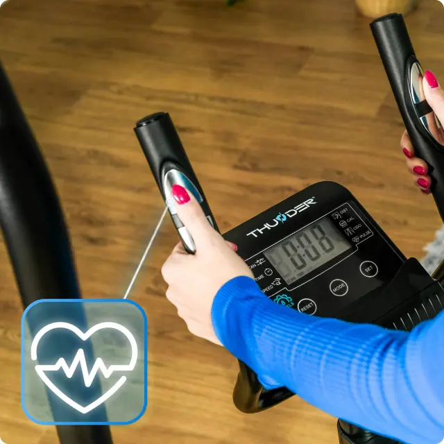 Magnetni eliptični trenažer THUNDER® FLASH – 8 stopenj upora, 7 kg vztrajnik, 32 cm korak, držalo za bidon, senzorji utripa, nosilnost 110 kg
