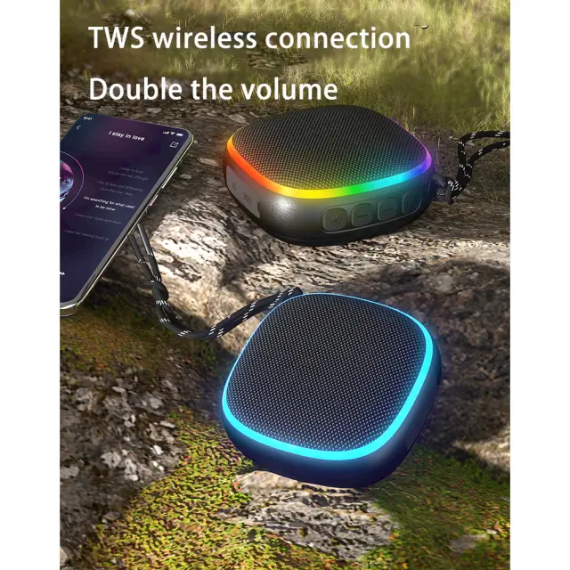 Prenosen in dolgotrajen: Kompakten in enostaven za prenašanje v torbi ali žepu, zaradi česar je idealen za potovanja, pohodništvo ali kampiranje. Vgrajena baterija s kapaciteto 1000 mAh zagotavlja do 5 ur predvajanja z enim polnjenjem, polnjenje pa je hitro v samo 2 urah prek USB-ja. Kombinacija prenosljivosti in dolge življenjske dobe baterije naredi ta zvočnik nepogrešljiv spremljevalec na vseh vaših dogodivščinah.