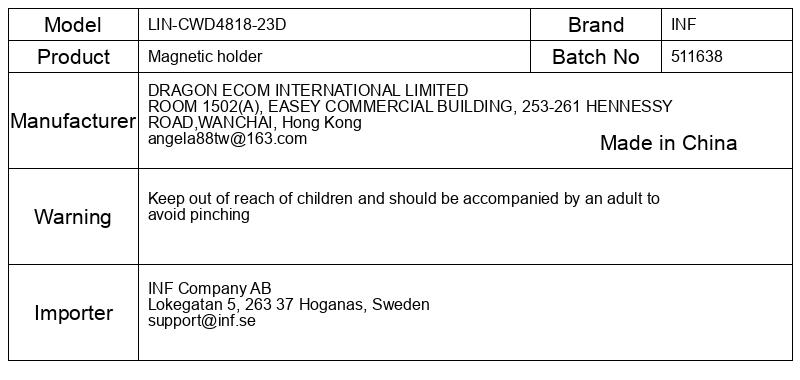 Podatki o proizvajalcu vključujejo informacije (naziv, naslov, državo in elektronski naslov) povezane s proizvajalcem izdelka.