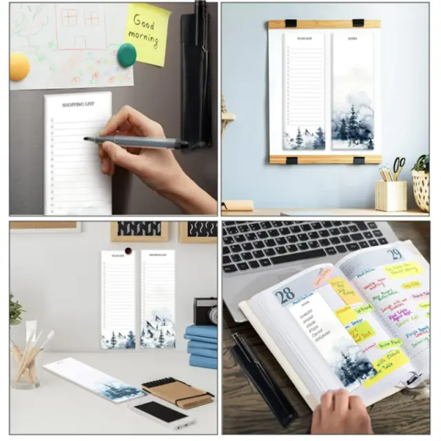 Vsestranski in praktični: zapiske lahko uporabite za različna opravila, od pisanja nakupovalnih seznamov in opomnikov do puščanja sporočil družinskim članom. Zaradi udobne velikosti so popolni za vsakodnevno uporabo.
