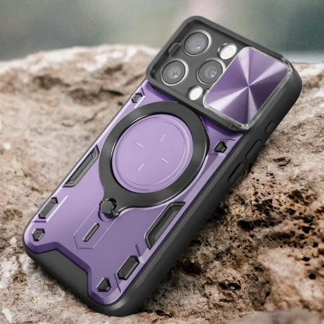 Zašcita iPhone 15 Pro s podporo za obrocek. Ovitek MagSafe za iPhone 15 Pro iz gel silikona in polikarbonata. Školjka z drsno kamero. Eleganten etui Apple iPhone 15 Pro. Ovitek z magnetom za iPhone 15 Pro.