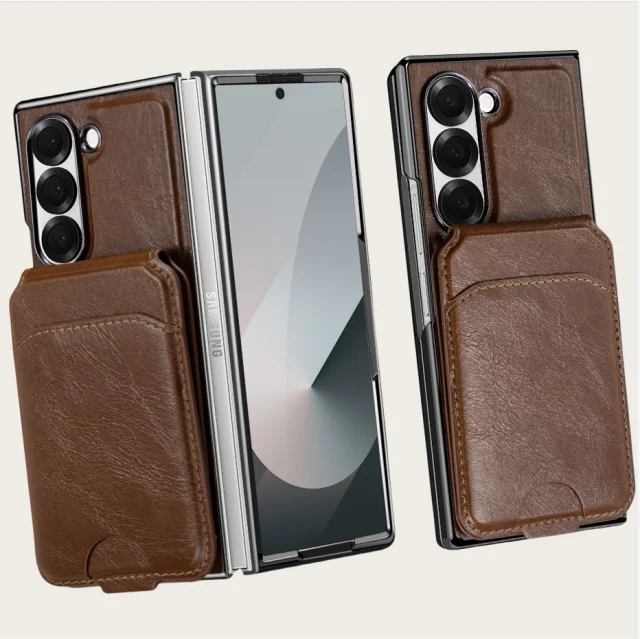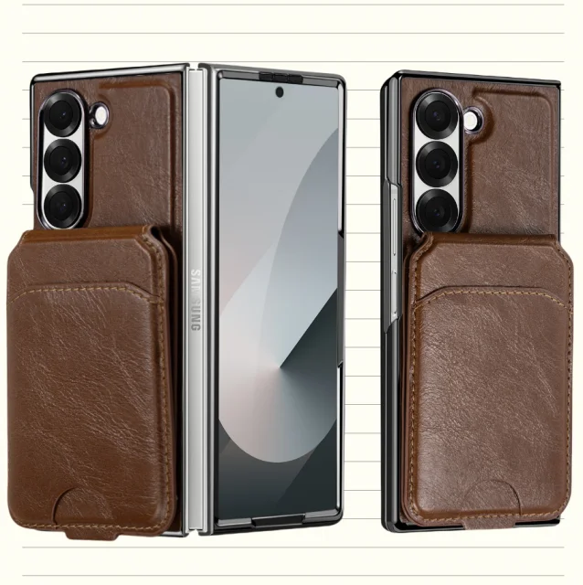 Magnetni ovitek za Samsung Galaxy Z Fold z držalom za kartice, denarnica z RFID blokiranjem coffee Model 1